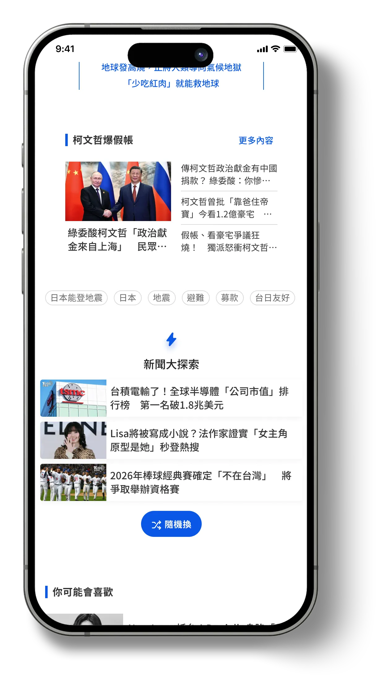 A lightweight module at the end of the article. I designed it so that each tap surfaces three fresh stories drawn from a mix of trending, recent, and under-explored categories.