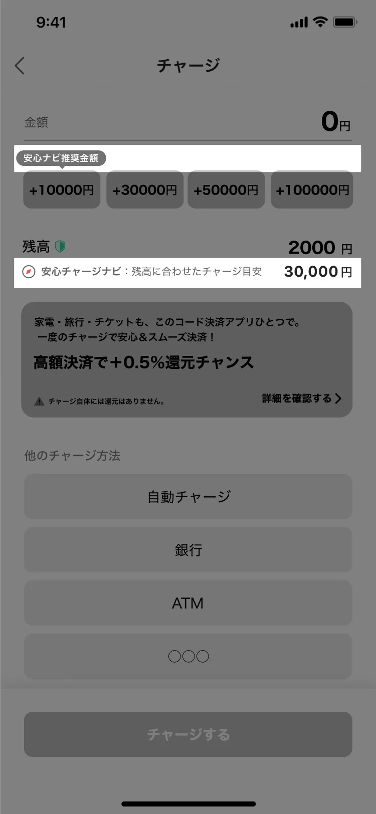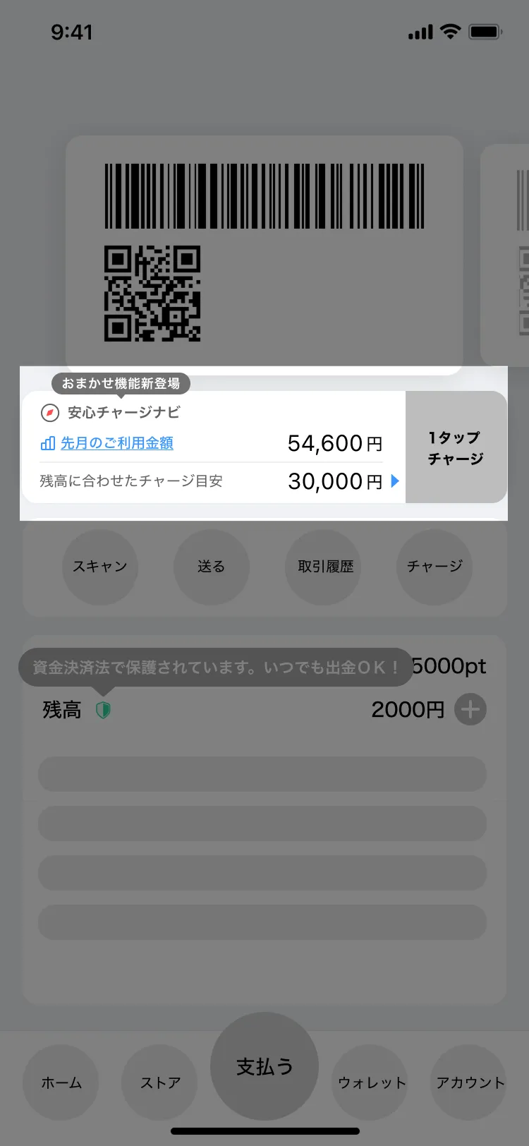 システムによるチャージ提案で支出を可視化し、安心感を創出。
